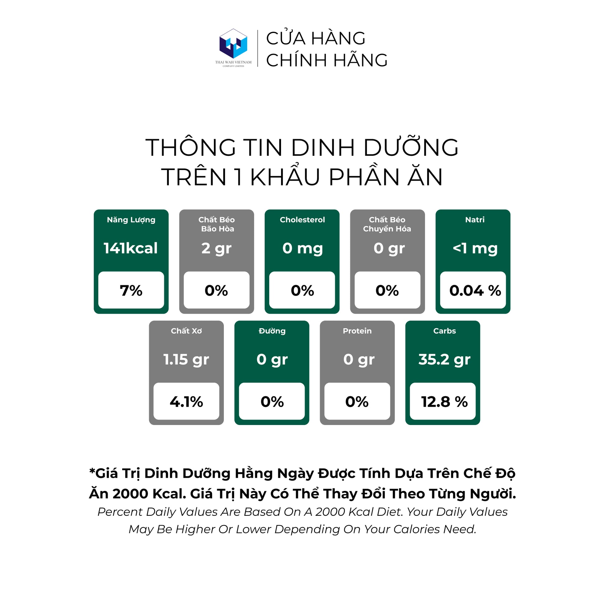 Sản xuất bởi: CÔNG TY TNHH THAI WAH VIỆT NAM Địa chỉ: Lô C1-6, Đường N8, Khu C1, Khu Công nghiệp Tân Phú Trung, Xã Tân Phú Trung, Huyện Củ Chi, Thành phố Hồ Chí Minh Điện thoại: 0283 620 3522 | Fax 028 3620 3523